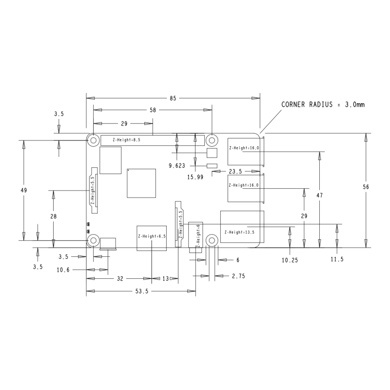 The metal shielding on the wireless circuitry and the SoC may also cause shorts against larger components on the underside of HATs, pHATs, and SHIMs. In the first two cases, standoffs will help again; in the latter, a couple of small pieces of insulating tape or Kapton tape will prevent any shorts.