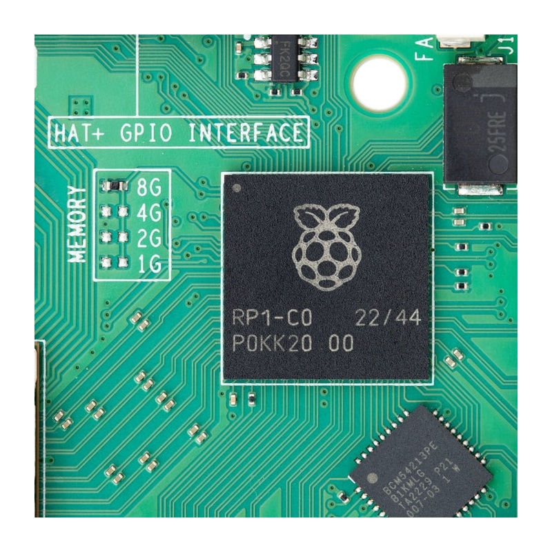 For the first time, this is a full-size Raspberry Pi computer using silicon built in-house at Raspberry Pi. The RP1 provides the bulk of the I/O capabilities for Raspberry Pi 5, and delivers a step-change in peripheral performance and functionality. Aggregate USB bandwidth is more than doubled, yielding faster transfer speeds to external UAS drives and other high-speed peripherals; the dedicated two-lane 1Gbps MIPI camera and display interfaces present on earlier models have been replaced by a pair of four-lane 1.5Gbps MIPI transceivers, tripling total bandwidth, and supporting any combination of up to two cameras or displays; peak SD card performance is doubled, through support for the SDR104 high-speed mode; and for the first time the platform exposes a single-lane PCI Express 2.0 interface, providing support for high-bandwidth peripherals.
