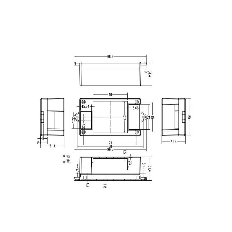 جعبه برد پلاستیکی سفید وارداتی 82x50x32mm