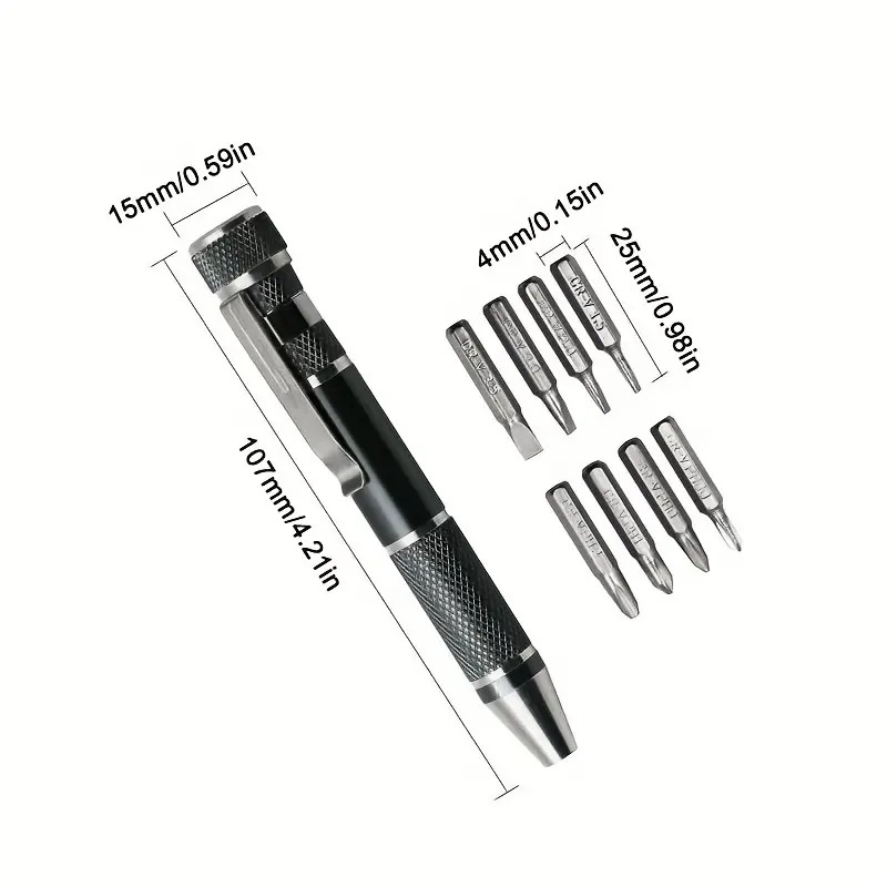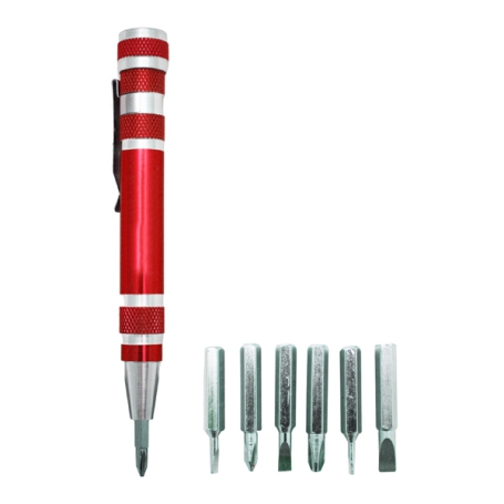 مجموعه پیچ گوشتی 9 تکه  با دسته پیچ گوشتی فلزی و 8 عدد سری مختلف از فولاد کروم وانادیوم با کیفیت بالا ساخته شده است.این پیچ گوشتی ها دارای طراحی ارگونومیک و ابعادی کوچک می باشد.