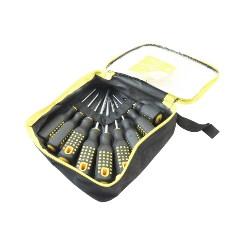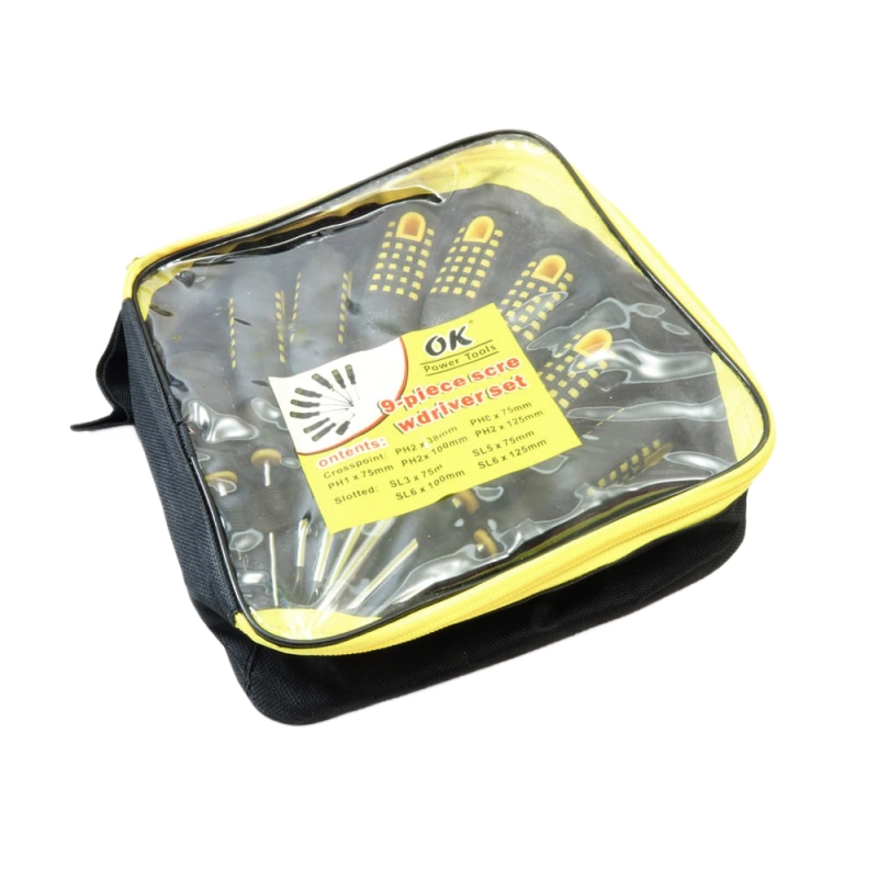 ست پیچ‌گوشتی 9 تکه OK شامل ترکیبی از پیچ‌گوشتی‌های دوسو و چهارسو در اندازه‌های مختلف است که نیازهای عمومی و تخصصی در تعمیرات الکترونیکی، مکانیکی و خانگی را پوشش می‌دهد. طراحی ارگونومیک دسته‌ها با روکش پلاستیکی ضدلغزش و آج‌دار باعث می‌شود تا کاربر در حین استفاده کنترل بهتری داشته باشد و خستگی دست کاهش یابد. میله‌های فلزی این مجموعه از جنس کروم-وانادیوم هستند که مقاومت بالایی در برابر خوردگی، فشار و پیچش دارند. ترکیب اندازه‌های مختلف در این ست باعث شده تا برای طیف وسیعی از پیچ‌ها قابل استفاده باشد؛ از تعمیرات الکترونیکی ظریف گرفته تا باز و بسته کردن اتصالات بزرگ‌تر در صنایع سبک و سنگین. به‌علاوه، این مجموعه در یک کیف برزنتی زیپ‌دار و بادوام عرضه می‌شود که حمل و نگهداری آن را بسیار آسان می‌سازد.