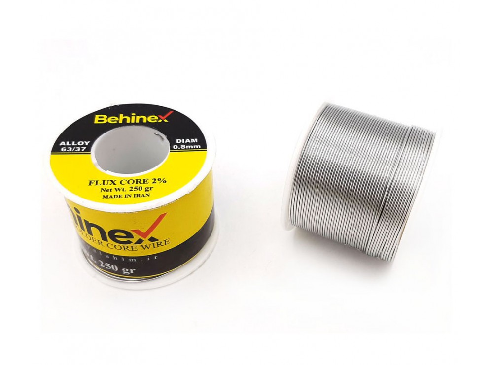 سیم لحیم بهینکس (Behinex) با قطر 0.8 میلیمتر 250 گرمی، مخصوص مونتاژ قطعات DIP ،SMD و تجهیزات صنعتی
