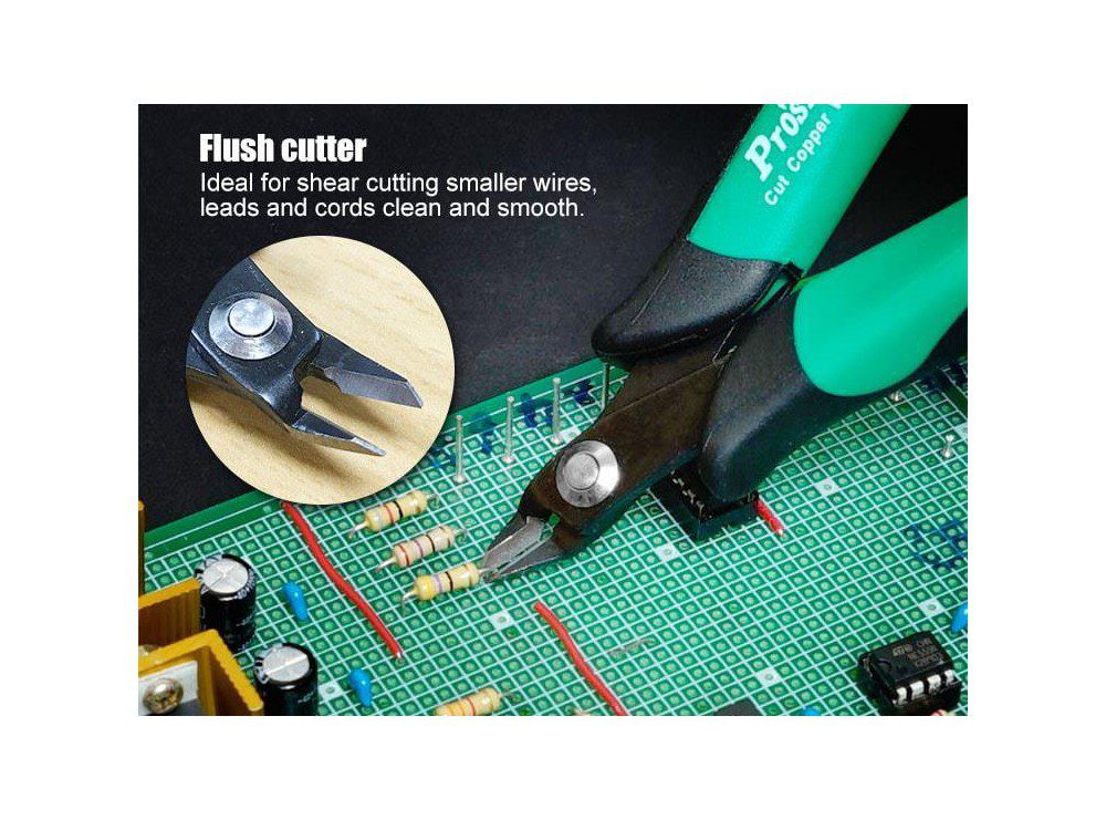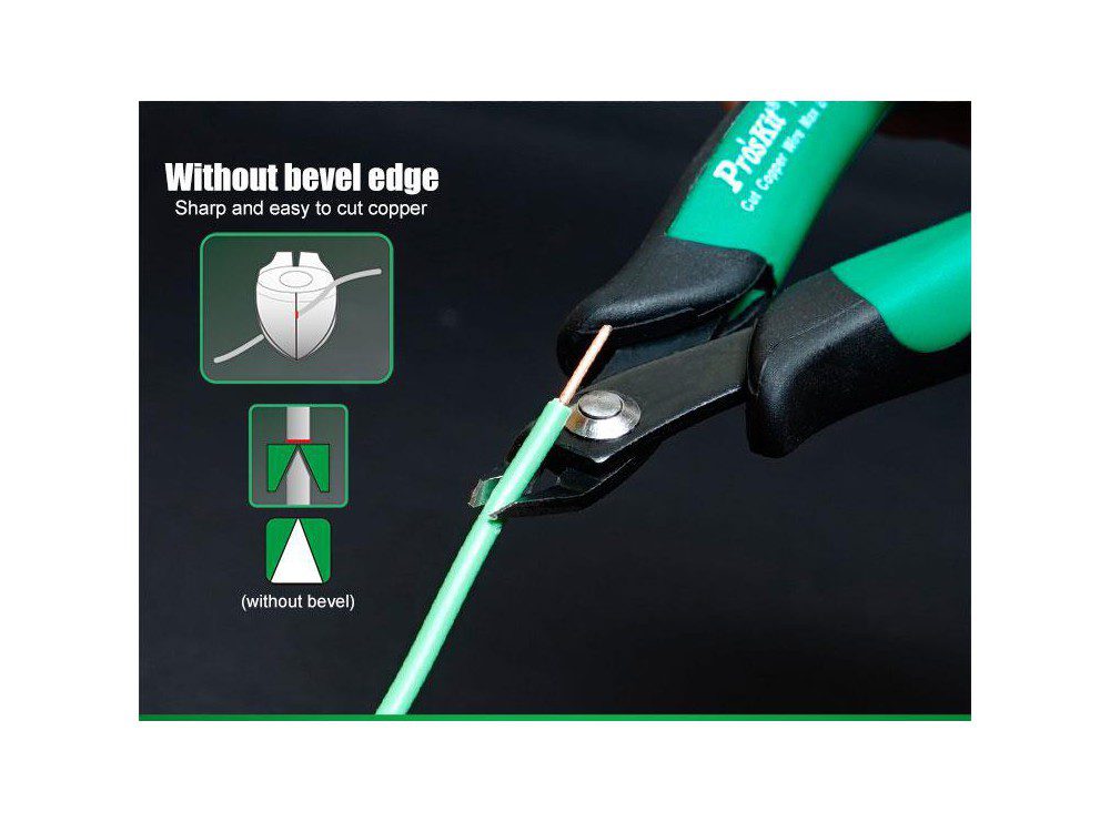 With 21-degree full flush cutting blades to cut copper wire or trim leads.