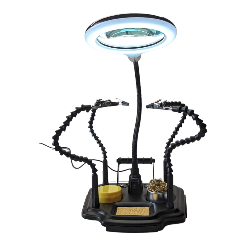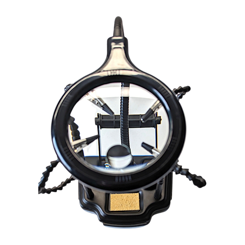 گیره کمکی مونتاژ رومیزی مناسب و کاربردی برای ساخت و مونتاژ قطعات حساس دارای 4 گیره نگهدارنده سر سوسماری انعطاف دار به همراه ذره بین چراغ دار سومو SOMO مدل SM113